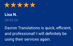 “I have used the translation agency DAVRON TRANSLATIONS many times over the past few years. Their reliability, quality of expression and fast turnaround times, as well as the friendliness of their team, undoubtedly make them a service provider that we can rely on and that we enjoy working with.”